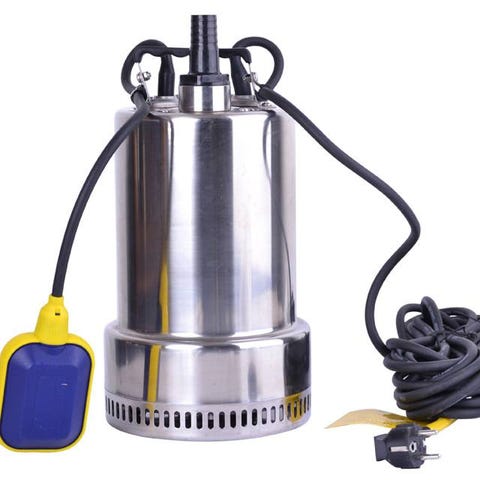 Dykpumpe med kniv + flyder Findeler tråde, græs og andet vha den indbyggede kniv. Leveres inkl. omformer/studs og spændebånd til slange. Specificationer: Op til 18.000 liter vand pr. time Med svømmeafbryder Skovlhjul i rustfri stål Løftehøjde ca. 11 meter 1,5" udgang 1.100 watt (230 volt) motor 10 meter 1,5 mm² kabel med jord Højde: 40 cm 2 studser: 1¼" og 1½" (kan bruges til både 1½" og 2" brandslange) Splittegning/reservedelsliste Nr. 8002894
