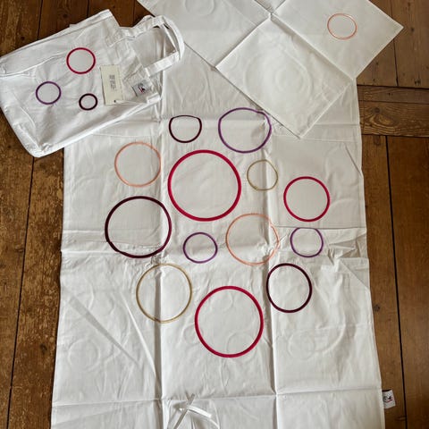 Det er brugt men i flot stand udover en enkel plet på pudebetrækket (se vedhæftet billede)