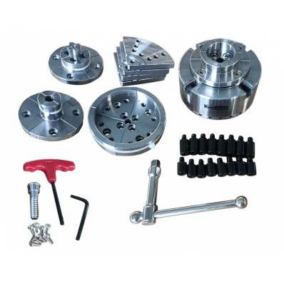 Centrerpatron - passer til 18 mm gevind. Fra den tyske værktøjsgrossist Güde Firkloen har 4 bakker, som alle justeres samtidig. Neget nem og præcis justering. Låser automatisk ved tilspænding Vendbare bakker. Til M18x2.5 gevind (som fx TMC-1000 + WLM1001) Diameter 155mm Nr. 11418