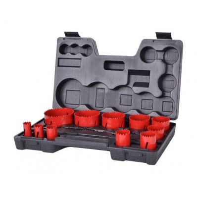 Professionelt hulsavssæt / kopbor i bimetal med store størrelser: 64, 76, 89 og 102 mm. Absolut topkvalitet til både metal og træ. Komplet sæt som også indeholder holder og 2 styrebor. 64, 76, 89 og 102 mm Holder + 2 styrebor Materiale: bimetal Nr. 8003080