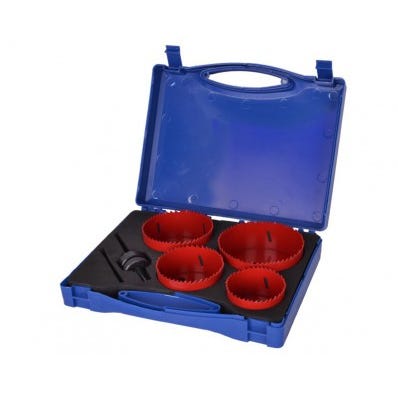 Professionelt hulsavssæt / kopbor med 11 stk. Top kvalitets sæt i bimetal med udløserfjeder, 2 holdere og forlænger. 19, 22, 25, 32, 35, 38, 44, 51, 57, 64 og 76 mm 2 holdere Udløserfjeder Forlænger Materiale: bimetal Nr. 8003081