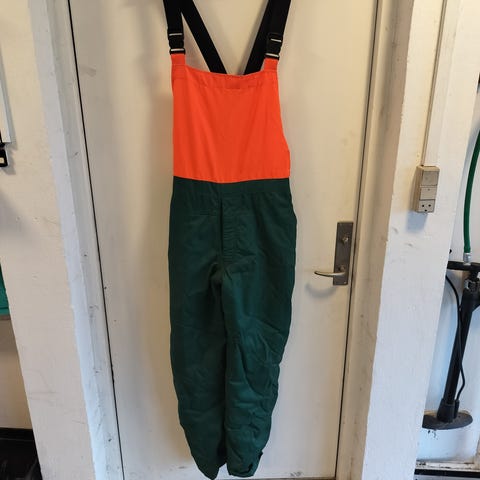 10-lags skærebukser (klasse 1) med stropper. I kraftig godkendt kvalitet med flerlags-teknologi. En klassisk sikkerhedsbuks, hvor kæden i tilfælde af uheld lynhurtigt vikles ind stoffet og bremses. Type A godkendt/klasse 1 10 lag stof - 108 g/m² Materiale: polyester 3 lommer heraf 1 m/lynlås Størrelse: Extra Large / 54 Livvidde: op til 108 cm Skridtlængde: 79 cm Findes flere størrelser - se herunder