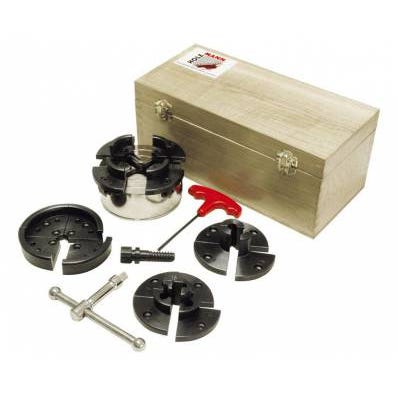 Universal 125 mm (5") centrerpatron/firklosæt til drejebænke med 33 mm (M33) aksel. Denne centrerpatron åbnes og lukkes ved hjælp af et enkelt håndtag - og kan samtidig spændes hårdt op både indvendig og udvendig. Passer til alle Holzmann drejebænke. I denne pakke er følgende inkluderet: 125 mm centrerpatron 4 forskellige sæt bakker til indvendig + udvendig opspænding 1 håndtag 1 nøgle til skift af bakker Til M33 aksel Nr. 8008570