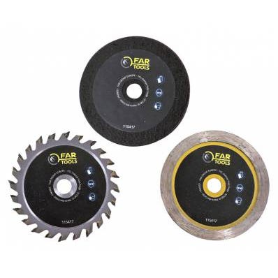 Segmenteret skæreskive til mini vinkelsliberen fra Fartools. Denne klinge udmærker sig ved kunne skære i både metal og træ.