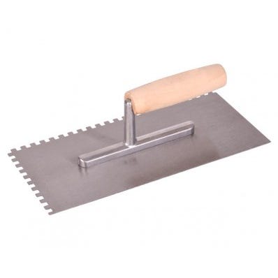 10 mm tandspartel til brug ved opsætning af fx fliser. Med træhåndtag og 2 sider med tænder. Denne model har en tandafstand på 10 mm og efterlader meget fliseklæb mm ved brug. Tandafstand: 10 mm Bredde: 130 mm Længde: 280 mm Skaft: træ Husk også der er 20 % rabat ved køb af mindst 5 værktøjer i denne kategori: murerværktøj