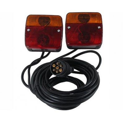 Ekstra baglygter til montering med magnet. LED teknologi med 14 LED i hver lampe. En smart løsning til alle typer af trailere, skurvogne mm, hvor man har brug for aftagelige baglygter. Også en fornuftig løsning til bådtrailere, så man undgår at bakke ud i vandet med baglygterne. Meget nem montering. Man sætter blot lygterne på en overflade af jern og stikket i det 7-polede stik ved anhængertrækket. Bremse-, køre-, nummerplade- og blinklys samt reflekser (rød). 7,5 m ledning + 2,5 m mellem lygterne. Nr. 8005000