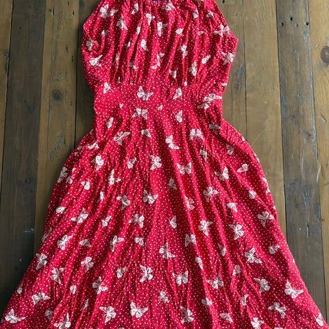 Fin sort vintage todelt kjole med pink polka prikker. Kan bruges sammen eller hver for sig.