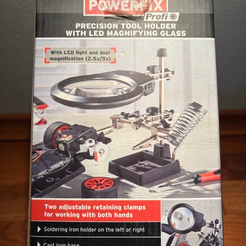 Praktisk loddehjælp, tredje hånd med forstørrelsesglas