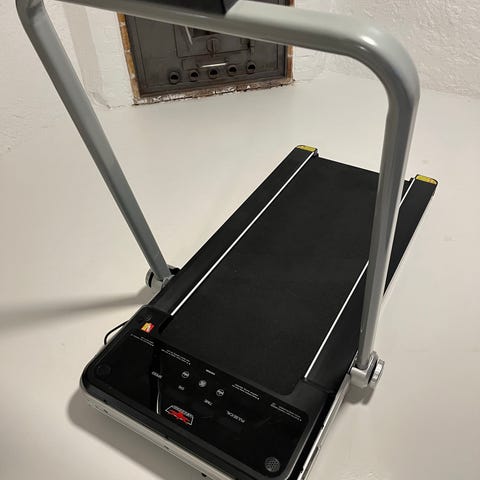 Dette manuelt betjente løbebånd giver dig mulighed for at træne hjemme, når du vil. Løbebåndet har en løbeoverflade på 93 x 36 cm. Du får båndet til at bevæge sig ved at gå fremad. Jo hurtigere du går, des hurtigere bevæger båndet sig. Den skridsikre løbeoverflade er behagelig og sikker at gå på. Samtidigt tracker den inkluderede monitor din hastighed, træningstid, løbedistance og forbrændte kalorier. Løbebåndet optager ikke for meget plads, når det opbevares, grundet sit foldbare design. Desuden kan fødderne højdejusteres for at justere løbebåndets vinkel. Træn og kom i form derhjemme med dette kompakte og fleksible, foldbare løbebånd! Bemærk venligst, at dette er en lille, ikke-elektrisk løbebånd, som er bedst egnet til gang, jogging eller let løb. For større/højere brugere eller mere trænede løbere anbefales det at købe større, elektriske løbebånd.Vi har en overraskelse til dig! Brug rabatkoden dbaXL, når du betaler, og så får du 10% ekstra rabat. Denne rabatkode kan kun bruges til vidaXL-mærkede produkter, og den kan anvendes med et minimum købsbeløb på 750kr. God shoppingtur!