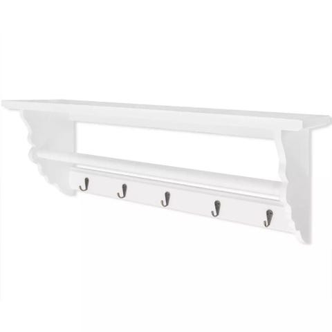 Denne knagerække i barokstil vil skabe blikfang i ethvert rum. Med et usynligt monteringssystem kan knagerækken let hænges op på en hvilken som helst væg. Knagerækken har en hylde, som er oplagt til at opbevare trofæer, bøger, samleobjekter, ornamenter, osv. Med de 5 kroge og 1 tværgående stang er der rigeligt plads til at opbevare tørklæder, slips, frakker, tasker, kasketter, nøgler osv. Knagerækken er lavet i MDF af høj kvalitet og således meget holdbar. Knagerækken i barokstil passer til enhver indretningsstil og forvandler enhver tom væg til noget særligt.Vi har en overraskelse til dig! Brug rabatkoden dbaXL, når du betaler, og så får du 10% ekstra rabat. Denne rabatkode kan kun bruges til vidaXL-mærkede produkter, og den kan anvendes med et minimum købsbeløb på 750kr. God shoppingtur!