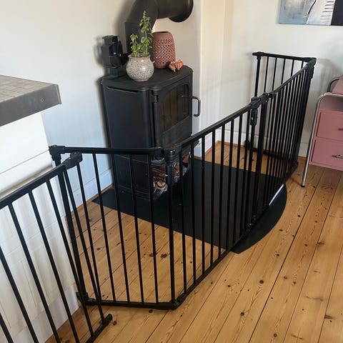 Med dette enkle, men stilfulde brændeovnsgitter kan du nyde din brændeovn, uden at skulle bekymre dig om dit kæledyrs sikkerhed. Det kan også bruges til at skabe en stabil barriere omkring en grill eller et komfur. Der er adgang gennem en bekvem svinglåge, og stålkonstruktionen i høj kvalitet gør den sikker og holdbar. Bemærk venligst, at dette produkt er beregnet til kæledyr og ikke til børn.Vi har en overraskelse til dig! Brug rabatkoden dbaXL, når du betaler, og så får du 10% ekstra rabat. Denne rabatkode kan kun bruges til vidaXL-mærkede produkter, og den kan anvendes med et minimum købsbeløb på 750kr. God shoppingtur!