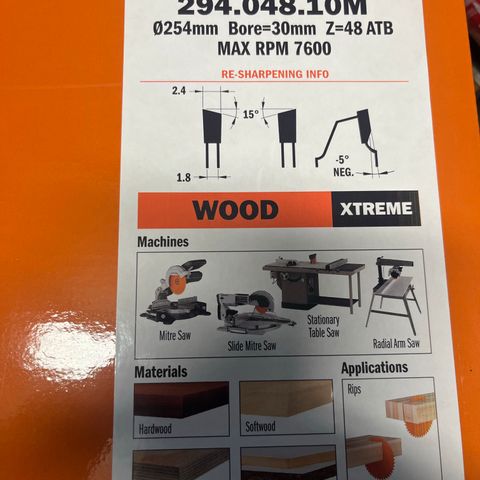 * 6 tænder, TCT-klinge.