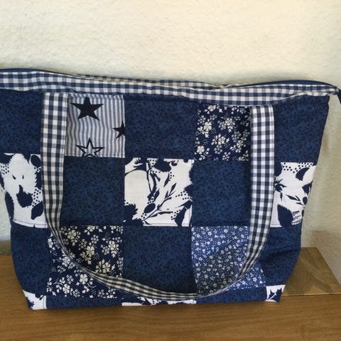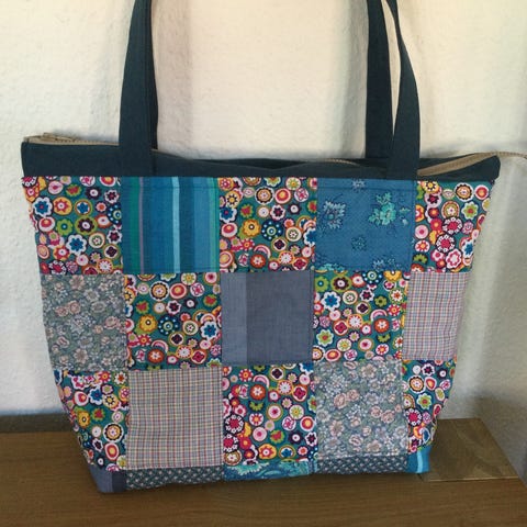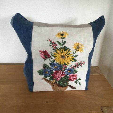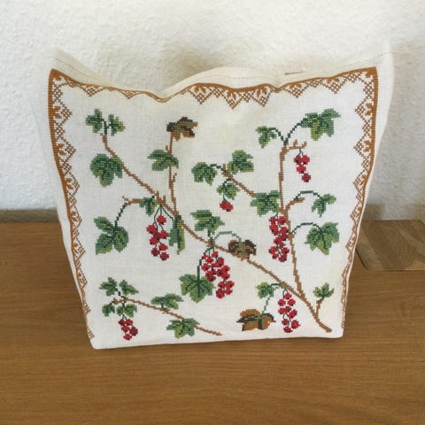 Taske syet af broderi (løber), bukser & forhæng som foer.