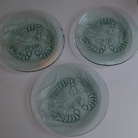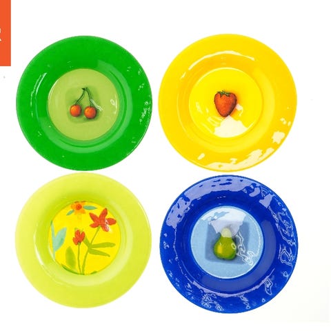 Porcelæn, Tallerkner, Dibbern, 12 Dibbern Glas tallerkener i 6 flotte farver med 6 flotte motiver - 6 store og 6 små.