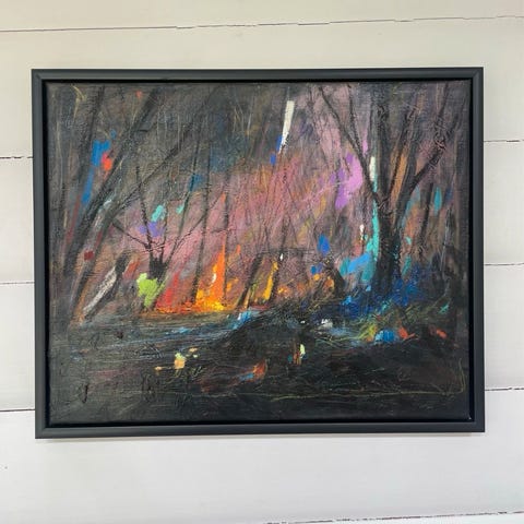 Kraftige farver og tydelig penselføring – et smukt og ekspressivt værk, klar til ophæng.