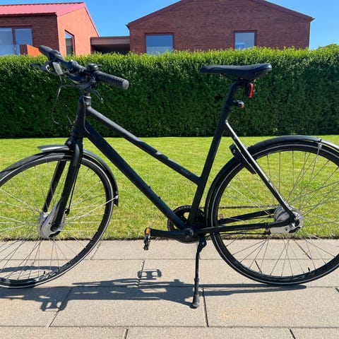Ny prisen i juli 2021 var 7.900,00 kr der er kvitering på cykelen og der med føgler cykellygter og ekstra wirelås.