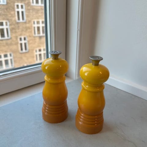 Salt/peber sæt fra le creuset i flot lilla ish farve.