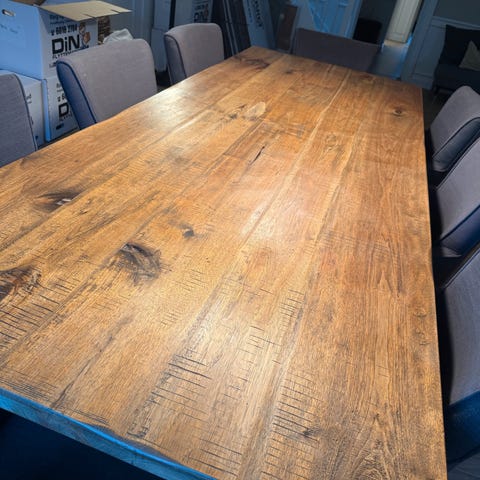 Stort massiv Ilva bord, lavet af trompet træ, i god stand er nybehandlet med voks, derfor fremstår det mørkt på billedet, sælges grundet flytning.