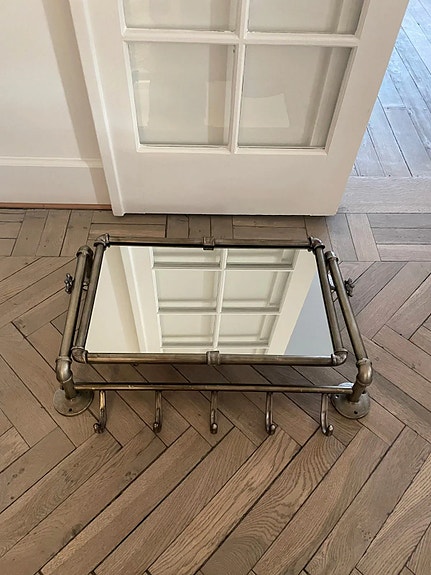 Den er meget speciel i overfladen da en del af messingen næsten fremstår bruneret. Det giver den det helt rigtige patineret look, som en lampe bør have når den er fra 1960'erne.