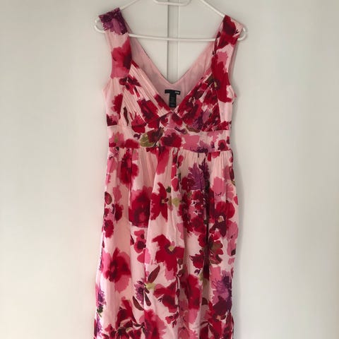 Sommerkjole, H&M, str. M, Lyseblå og hvid…..bred mælkedrengestribet, 100% bomuld, God men brugt, Sød sommerkjole i bredstribet mælkedrengestof. 100% bomuld. Kjolen går til midt på knæet/lige under. Den har elastik i pufærmerne og i halsen.