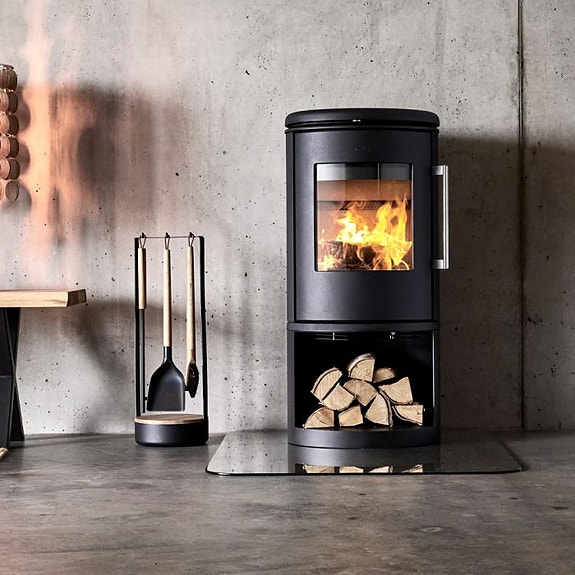 TT44 er en sand skønhed med sine elegante, afrundede stålsider og robuste støbejernstop. Det store, buede frontglas giver dig en fantastisk udsigt til ilden, der skaber en hyggelig og varm atmosfære i dit hjem.