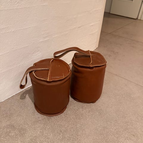 Dørstoppere fra Dot Aarhus i egetræ og læder