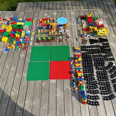 Stor sivkurv fra Rice fyldt med Duplo klodser, byggeplader dyr, mennesker, blomster, planter mm. (uniksex)