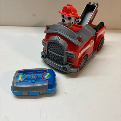 Paw patrol brandbiler , fjernstyret, Paw patrol, Pæn og velholdt. Virker. Fjernstyret bil til de mindste. Bruger AAA batterier. Sender ja, du betaler selv fragten.