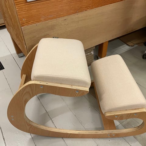 Fungerer fint og er højde justerbar. Fremstår ren og pæn. Ergonomisk skammel