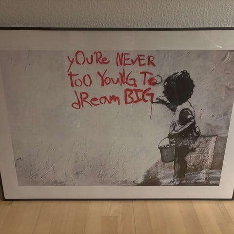 BANKSY, kunst, tryk på stof.