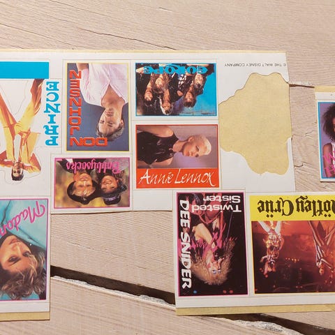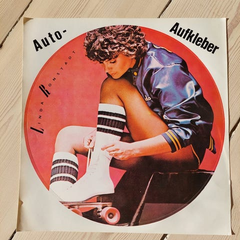 Stort rundt klistermærke fra 70'erne med sangeren Rod Stewart på.