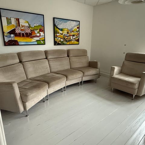 KARMAMEJU sofa der er 4 moduler på billedet og der findes 2 mere. Alle med ryg puder og ende puder.