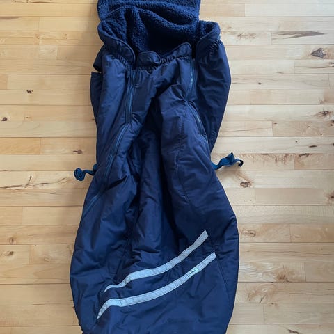 Vandafvisende yderstof og varmt inderfoer holder dig tør og varm i dårligt vejr. Kun brugt 1 gang. Læs mere om den her: https://www.livetsomsenior.dk/regnponcho-til-koerestolsbrugere.