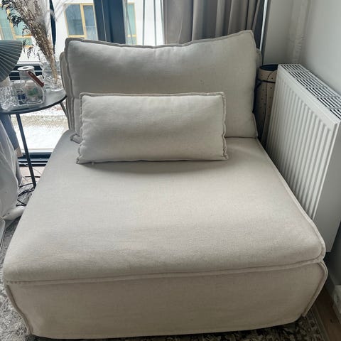 OBS! Der er ikke billeder på annoncen af puffen - skriv hvis du ønsker dette. Puffen har samme farve og stand som stolen.