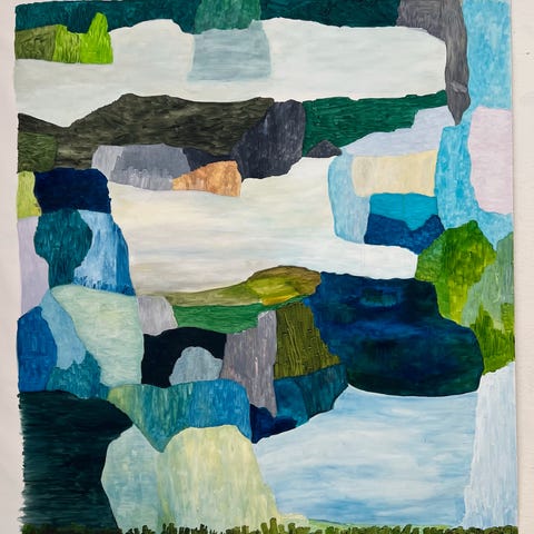 Det er friheden i processen, glæden ved materialet og opmærksomheden på det, der opstår uventet, som driver arbejdet fremad. Maleriet er et åbent rum, hvor intuitionen får lov at lede, og hvor betydning ikke fastlægges, men anes.