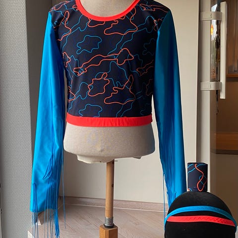 Til hver top følger: hårtårn og halsbånd.. OBS: Pris er for begge, dvs 440 kr pr stk. De sælges kun samlet.