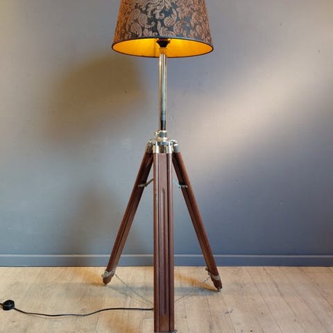 2 ens designer gulvlamper på teleskop stativ/tripod, højde regulerbar