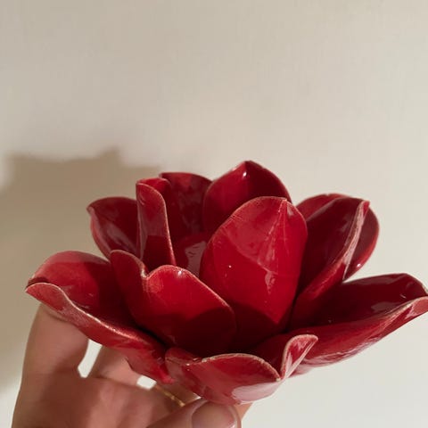 Keramik, fyrfadsstage af ukendt oprindelse ældre, en fyr fadsstage i kramik i begige ogsotmønstret ca 14 cm i diameter af ukendt oprindelse men ca fra 70erne i fejlfri stnd. sendes for købers regning eller hentes her