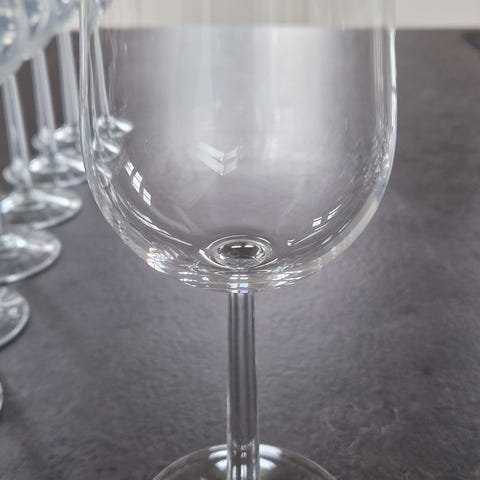 Helt nye glas, hvor mærket kun er lidt flådset fordi de er vasket i hånden ved køb og nu hvor de skal sælges.