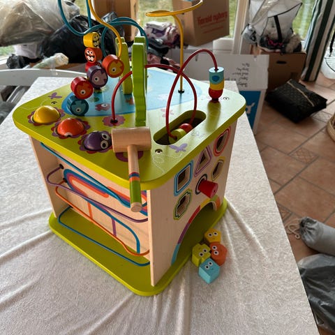 Selve konstruktionen er lidt ustabil men sådan er den bare designet. Den samlets nemlig udelukkende ved at sætte træpladerne sammen 😊