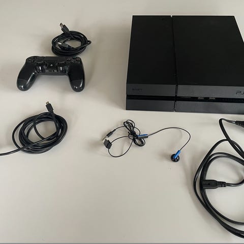Playstation 4 console med alle kabler