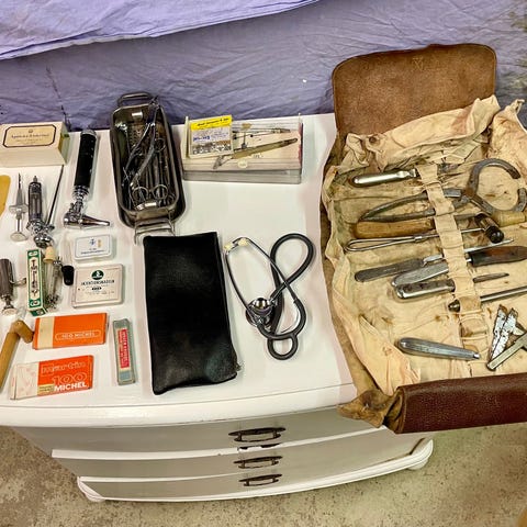 Lidt blandet gamle læge instrumenter fra rigshuspitalet.