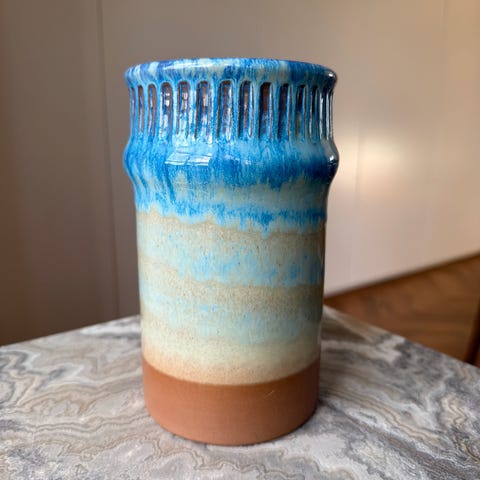 Vase med smuk blågrå glasur. Højde ca 19cm
