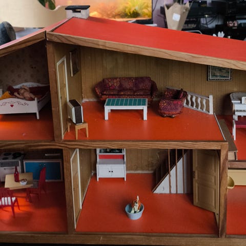 Gammelt dukkehus med inventar. Alt er ca. 55 år gammelt.