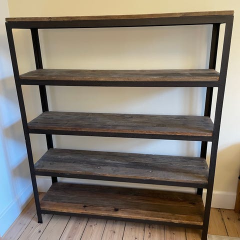 Retro industrireol. Til reolen medfølger yderligere hylder samt mellemstykker, således den enkelte hylde kan blive opdelt i flere rum som en postsorteringsreol.