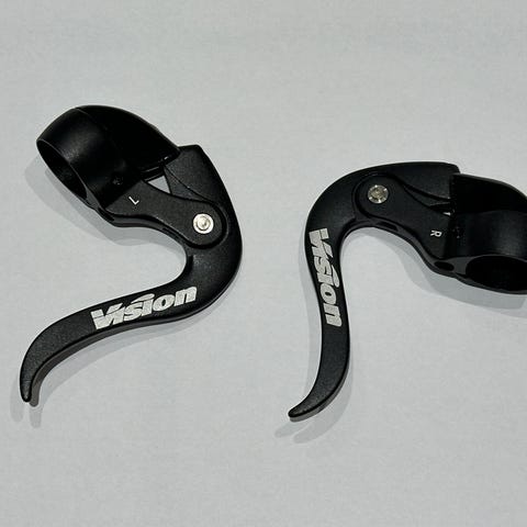 Vision carbon base bar inklusiv Vision bremsegreb. Til Ø31.8 og 410mm bredt (center-to-center). Base bar alene er opgivet til ca 200 g. Der kan monteres TT extension så styret kan bruges på en TT/triatlon cykel. Et bar enkelte småridser, men i virkelig fin stand. Til intern kabelføring