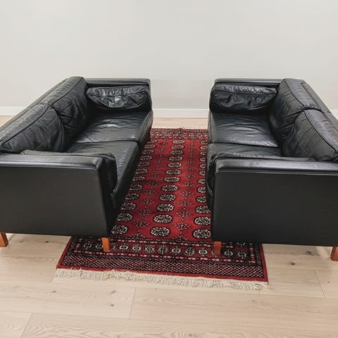 Jeg sælger disse to halvanden mands læder sofaer, da de ikke længere passer til vores families størrelse eller behov. Sofaerne står rigtig pænt uden nogen brugsspor eller ridser og man sidder super godt i dem.