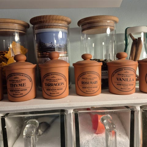 Krydderi krukker. Et ekstra låg til krydderi krukke.