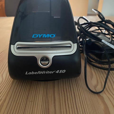 Dymo pakke med to printere (Labelmanager 500TS og 160, samt en masse uåbnede labelpakker. Der medfølger kun oplader til 500TS.