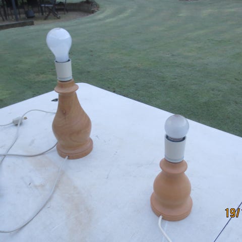 rund bordlampe ca 65 cm i omgang og ca 17 cm høj